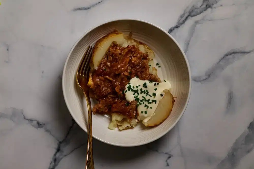 Pair it with the Pulled Chicken & Gravy from Dinners 4 and it turns into a proper comfort meal. The tender shredded chicken and rich, savoury gravy soak straight into the fluffy potato, giving you that classic loaded baked potato feel without needing a heap of extra ingredients.
