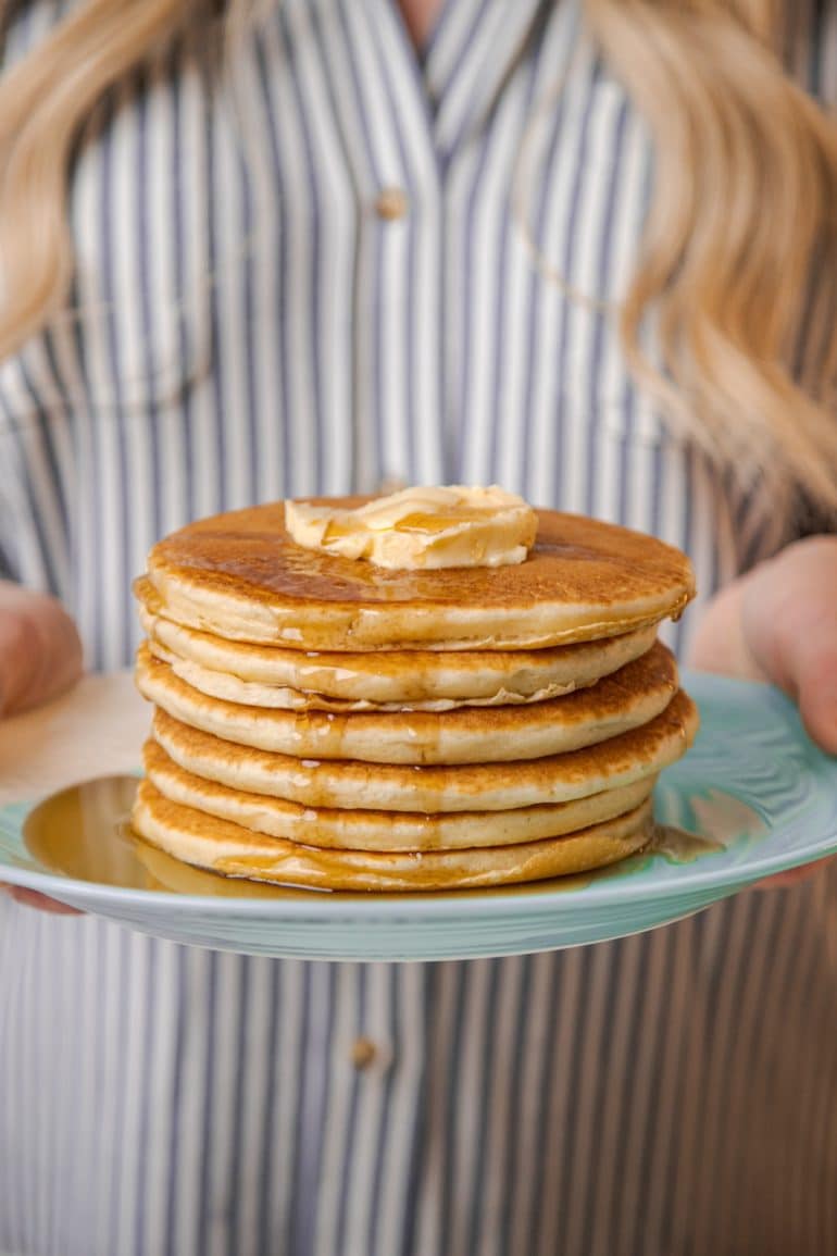 You can enjoy these with maple syrup, lemon & sugar or butter – but I won’t lie and say I haven’t loved eating them with a side of the Candied Maple Bacon and an extra drizzle of maple syrup or Whipped Maple Butter